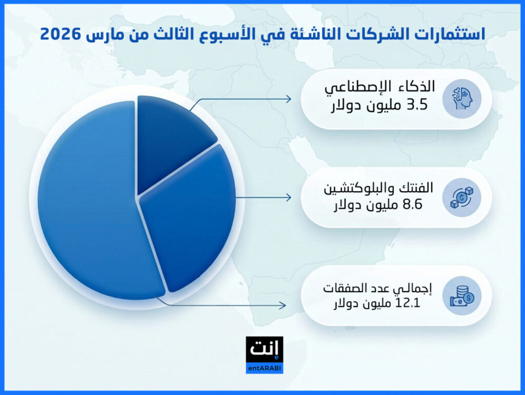 خلال الأسبوع الثالث من مارس 2026..استثمارات الشركات الناشئة تسجل 12.1 مليون دولار وصعود جديد للذكاء الإصطناعي