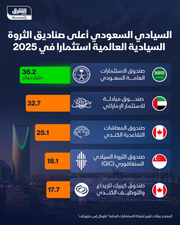 تصدّر صندوق الاستثمارات العامة السعودي الصناديق السيادية عالميًا في 2025 بإنفاق بلغ 36.2 مليار دولار، بزيادة 81% عن عام 2024.