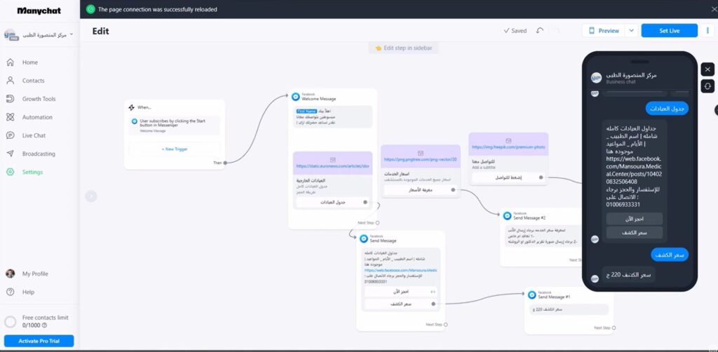 في مرحلة التواصل، يتم استخدام حلول المحادثة الذكية للرد على استفسارات العملاء بشكل فوري مثل Manychat، مما يحسّن تجربة المستخدم ويزيد من فرص التحويل، خاصة في المراحل الأولى التي يكون فيها الوقت عاملًا حاسمًا.