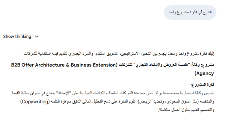 اطلب النتيجة بالشكل الذي تحتاجه، مثل: نقاط، خطة، تحليل، أو نص جاهز للاستخدام.