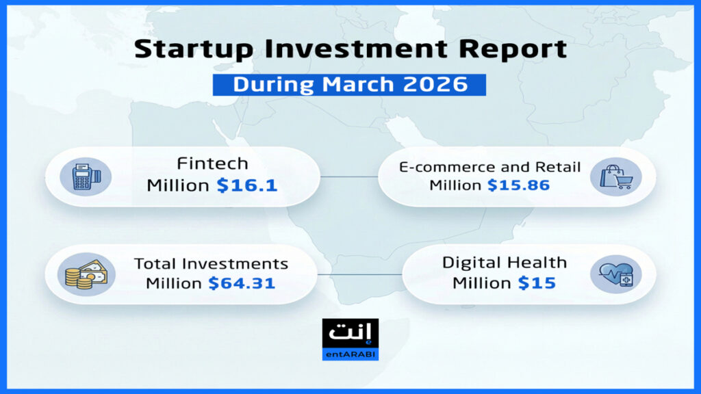 According to the monthly investment report issued by entArabi, total new investments in startups across 19 companies during March still surpassed $64.31 million, spanning 12 sectors, most notably artificial intelligence, fintech, smart mobility and logistics, e-commerce, digital infrastructure, and PropTech.